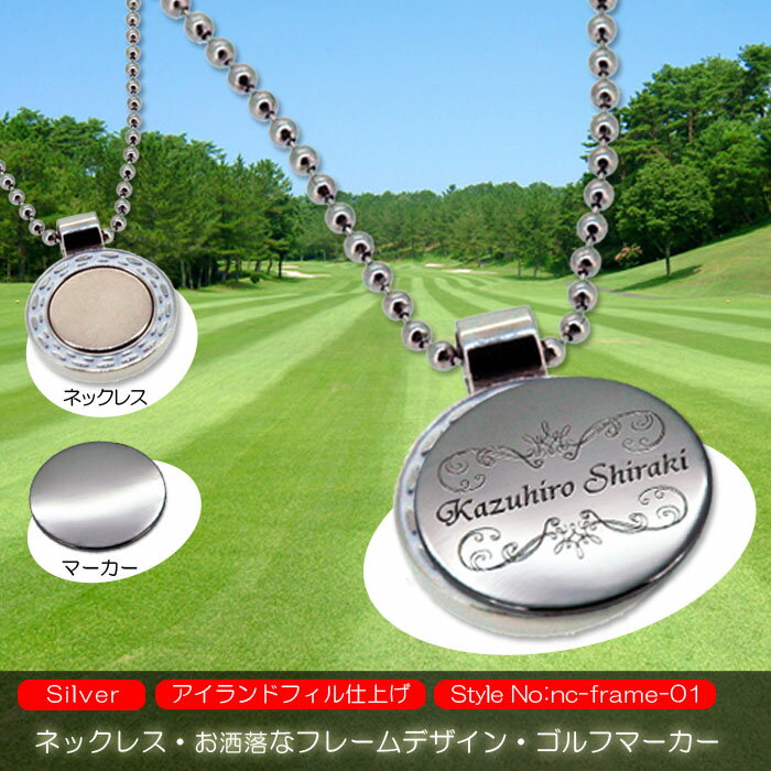 ネックレス ゴルフマーカー お洒落フレームデザイン世界でひとつだけの贈り物 オリジナルギフトにお勧め♪
