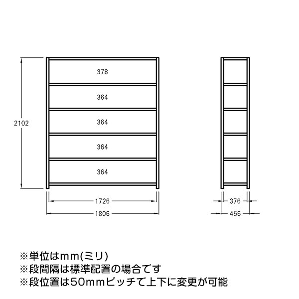 呼称サイズ高さ210cm×横幅180cm×奥行45cm実外寸サイズ高さ210.2cm×横幅180.6cm×奥行45.6cm有効内寸横幅180cm×奥行45cm段数6段タイプ単体タイプ重量(自重)58.59kgカラーホワイトグレー 材質スチール(鉄)生産国日本
