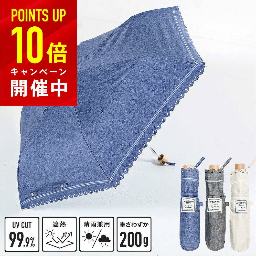 【 P10倍 】【 遮光・遮熱の晴雨兼用折りたたみ傘 】Waterfront 公式 Denim Border Parasol 50cm デニム ボーダー クールテック ひんやり涼感 熱中症 美容 完全遮光 UVカット 99% 遮熱 日傘 晴雨兼用 雨傘 折りたたみ レディース カジュアル おしゃれ かわいい ギフト