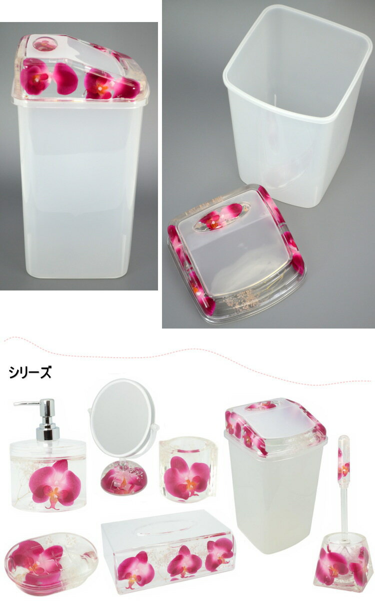 ダストボックス 蓋付き 蘭 アクリル ピンク 水中花おしゃれ 花 フラワー ゴミ箱 胡蝶蘭 ラン ごみ箱 収納ボックス アンティーク風 クラシック 雑貨 おしゃれ インテリア 洗える 輸入雑貨 ギフト包装無料 蘭 pas