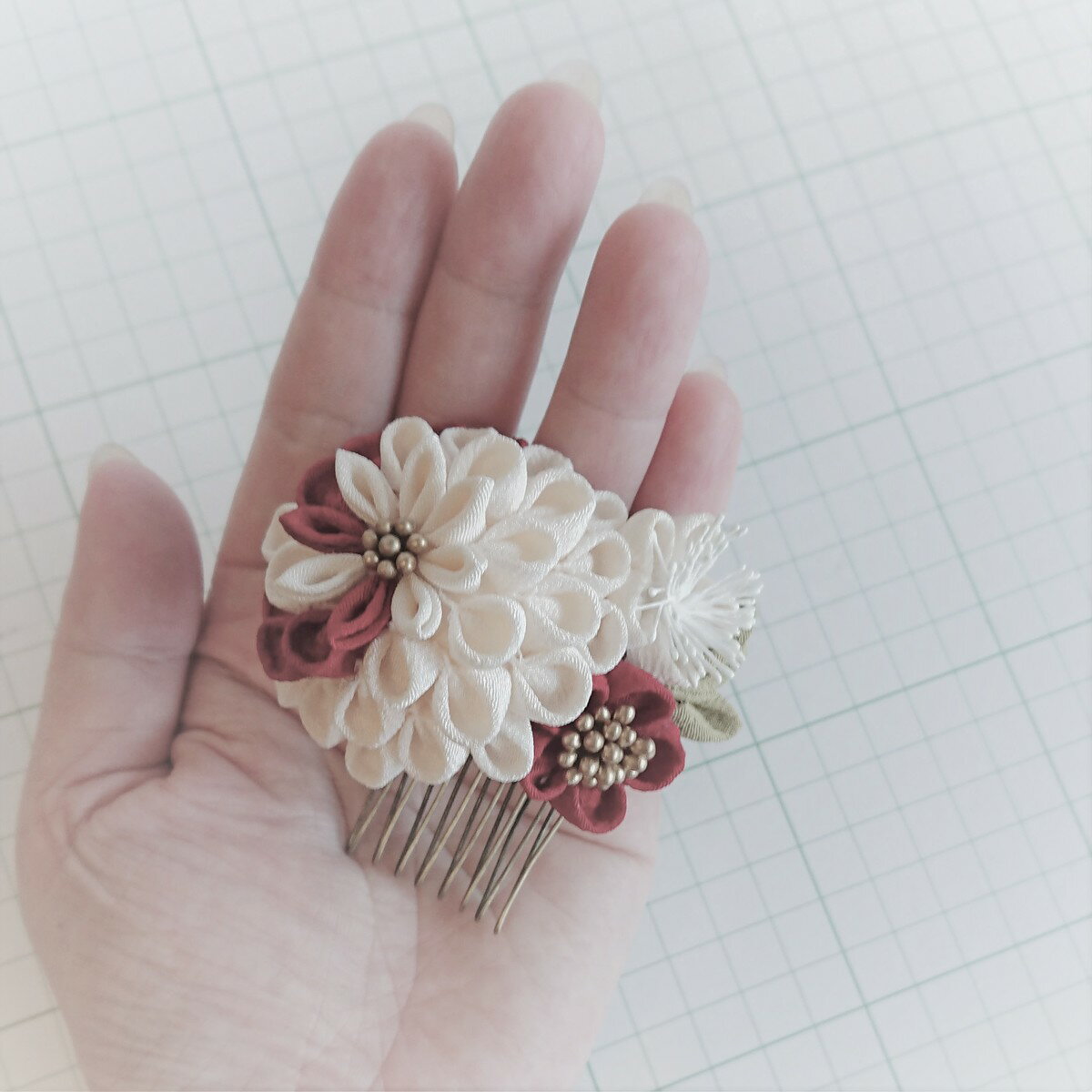 小さな半くすと小花の花束がかわいいつまみ細工の髪飾りでございます。