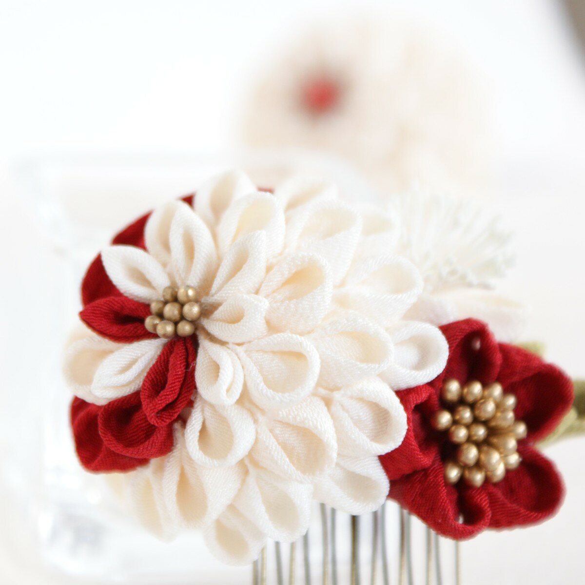 送料無料 シルク つまみ細工 正絹 絹 髪飾り 七五三 成人式 ワンポイント コーム かんざし 赤 お節句 婚礼 【753 RH】 [#10503 紅白豆かんざし ] 小さな小さなコロンとしたコームかんざし 七五三にそして品よくご成人式にそっと添えても素敵 「紅白 豆かんざし」 小さな小さなコロ〜ンとした紅と白の半くす ご成人式、上品にワンポイント。